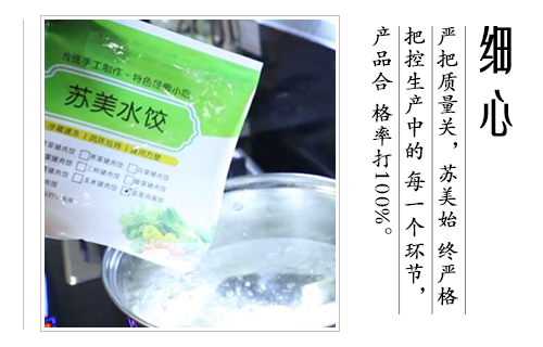公司產品涵蓋速凍水餃(含手工水餃和大餡水餃)、速凍餛飩、速凍湯圓等三個系列、30多個花色品種,主要產品在華東、華西、華北的市場占有率達18%以上,其中蘇美的芹菜豬肉水餃、韭菜雞蛋水餃以其獨特的口感,大受消費者好評,成為了新晉的網紅美食.